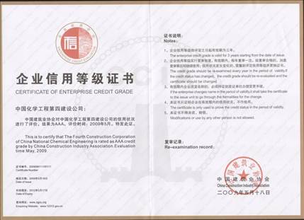 公司在學(xué)習(xí)實(shí)踐科學(xué)發(fā)展觀活動(dòng)中,切實(shí)加強(qiáng)信用管理,嚴(yán)格履行合同,優(yōu)質(zhì)安全文明施工,積極推進(jìn)技術(shù)進(jìn)步,自覺履行社會(huì)責(zé)任,取得了可喜的成效。近日,經(jīng)中國建筑業(yè)協(xié)會(huì)評(píng)定,公司獲評(píng)首批全國建筑業(yè)AAA級(jí)信用企業(yè)。