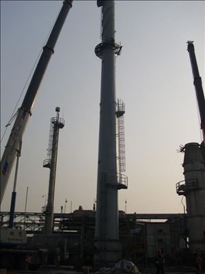 12月1日,第一工程處在南通瑞利化學有限公司承建的50米高鋼制煙囪順利吊裝就位。