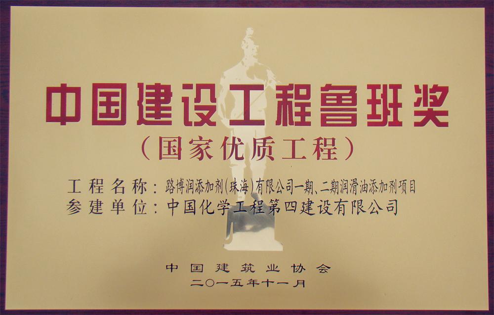 11月17日,國家住房城鄉(xiāng)建設(shè)部通報(bào)表彰了2014~2015年度中國建設(shè)工程魯班獎(jiǎng)(國家優(yōu)質(zhì)工程)獲獎(jiǎng)單位,中國建筑業(yè)協(xié)會(huì)在北京釣魚臺(tái)國賓館舉行隆重的表彰大會(huì),華南分公司參建的路博潤添加劑(珠海)有限公司一期、二期潤滑油添加劑項(xiàng)目榮獲中國建筑業(yè)的最高榮譽(yù)獎(jiǎng)——魯班獎(jiǎng)。這是公司成立61年來首次榮獲此項(xiàng)殊榮。