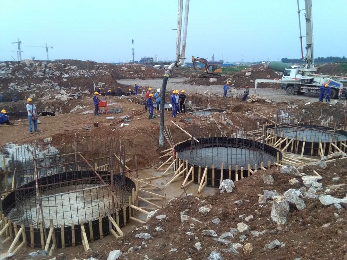 由于產品市場前景可觀,業主急于投產見效,在現場和圖紙條件不是很理想的情況下,要求我方盡早開工。分公司想業主之所想,立即安排該項目部負責人進場組織開工,在生活和辦公條件還沒完全建立起來的情況下,組織人員進場,清理基坑。
