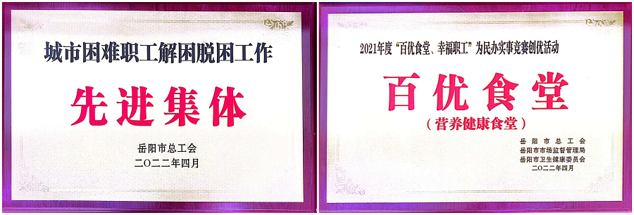 4月8日,岳陽市總工會召開2022年度工作會議,公司工會榮獲“2021年度先進單位”“城市困難職工解困脫困工作先進單位”,公司四化大廈食堂獲“湖南省級提名獎”“岳陽市百優食堂(營養健康食堂)”,在會上予以表彰獎勵。