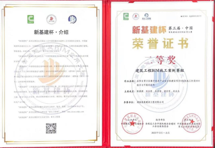 近日,從第三屆“新基建杯”中國智能建造及BIM應用大賽頒獎典禮傳來喜訊,由港晨公司BIM技術小組成員陳源源、劉長賢、李明智、胡慶軍、肖友杰共同創作的參賽作品《岳陽自貿片區數字經濟產業綜合體建設項目B地塊施工階段BIM技術與可視化應用》獲建筑工程BIM施工案例二等獎。