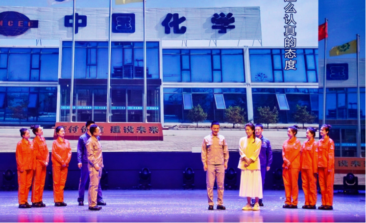 港晨公司傾情演繹的舞臺劇《追光·建未來》再現了四化建人在70年征程中,為國家建設夜以繼日奮斗的動人場景,演繹了化建人鳳凰涅槃、浴火重生的宏圖壯志,歌頌了建設者們向著美好生活踔厲奮發的豪邁氣概。