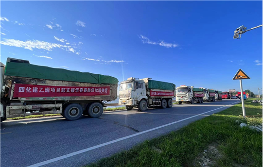 為積極響應(yīng)習近平總書記的重要指示精神,公司聞令而動,緊急組建防汛搶險突擊隊,運送搶險物料前往決堤處支援。6日凌晨,公司岳陽乙烯項目部調(diào)配土方車輛30余輛,裝滿塊石星夜出發(fā)前往現(xiàn)場支援。到7月8日22時,公司累計發(fā)送塊石資源990車,指揮人員及駕駛員549人,動用各類機械526輛,運輸3.465萬噸塊石前往決堤現(xiàn)場,為8日22時33分成功將決口封堵貢獻了力量。