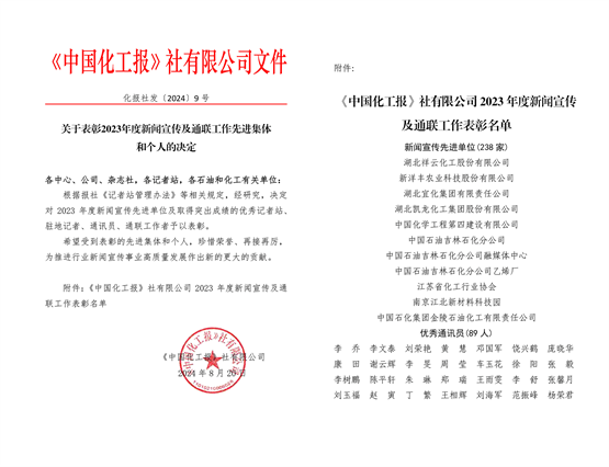 近日,《中國化工報》社有限公司在河南蘭考舉辦2024年通聯工作會議暨新聞業務培訓活動。會上對2023年度新聞宣傳工作先進集體和個人進行了表彰,公司獲新聞宣傳先進單位,《四化建簡報》執行主編謝云輝獲優秀通訊員。