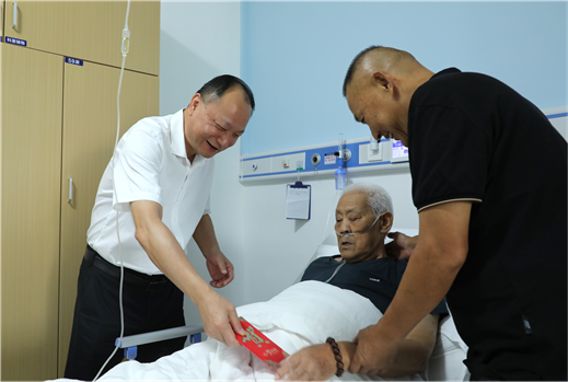 在看望慰問老同志王允平、韓興榮時,周鴻與他們親切交談,關切詢問他們的生活起居和身體情況,向他們為國家事業和公司發展壯大作出的貢獻表示感謝。衷心祝愿老同志健康長壽、闔家幸福,繼續關注公司事業發展,多提寶貴意見建議,推動黨的事業薪火相傳。他同時還叮囑有關部門要格外關心老同志,切實做好各項服務工作,讓他們安享晚年、幸福生活。