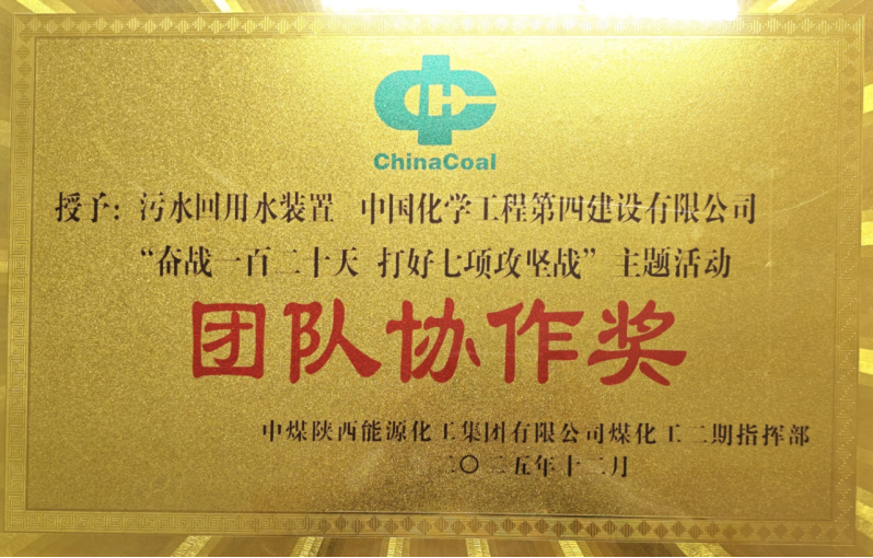 12月18日,中國化學(xué)工程第四建設(shè)有限公司黨委書記、董事長周鴻到中煤榆林煤炭深加工基地項(xiàng)目檢查指導(dǎo)工作,并應(yīng)邀出席中煤陜西能源化工集團(tuán)有限公司煤化工二期指揮部組織召開的“奮戰(zhàn)一百二十天·打好七項(xiàng)攻堅(jiān)戰(zhàn)”主題活動(dòng)表彰會(huì)暨2025年工作總結(jié)會(huì)。在表彰會(huì)上,公司中煤榆林項(xiàng)目部憑借攻堅(jiān)期間的優(yōu)異表現(xiàn)與突出貢獻(xiàn),榮獲“團(tuán)隊(duì)協(xié)作獎(jiǎng)”。