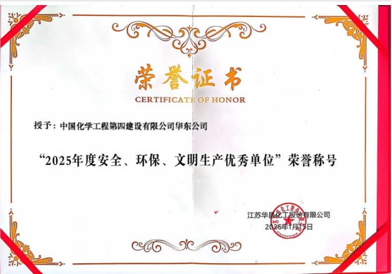 華東公司張家港華昌項目獲評業(yè)主“安全、環(huán)保、文明生產(chǎn)優(yōu)秀單位”