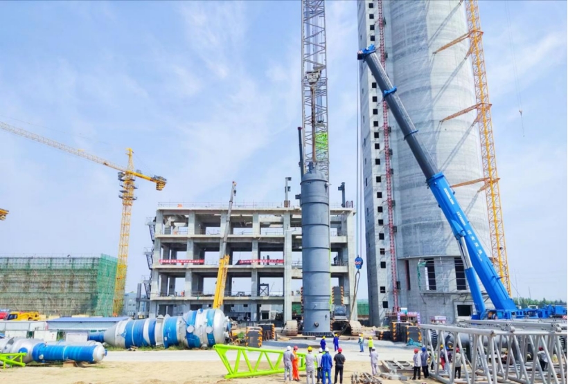 華北公司河南晉開延化項目大型設備吊裝就位
