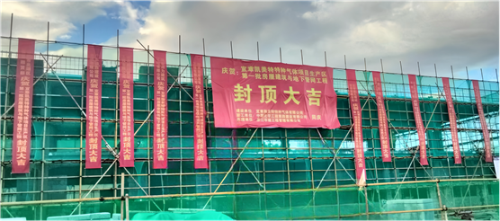 中南公司宜章凱美特特種氣體項(xiàng)目501生產(chǎn)管理辦公樓封頂