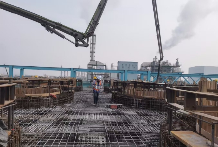 截至目前,項目部已順利完成多個重要節(jié)點任務(wù):AB反應(yīng)單元設(shè)備基礎(chǔ)按期交付、包裝廠房六層框架混凝土澆筑完成、南區(qū)地坪90%澆筑到位,項目建設(shè)取得階段性進展。通過優(yōu)化施工方案、加強現(xiàn)場管理、推廣先進技術(shù),項目部全體職工在確保安全質(zhì)量前提下,施工進度持續(xù)加快,為項目投產(chǎn)奠定堅實基礎(chǔ)。