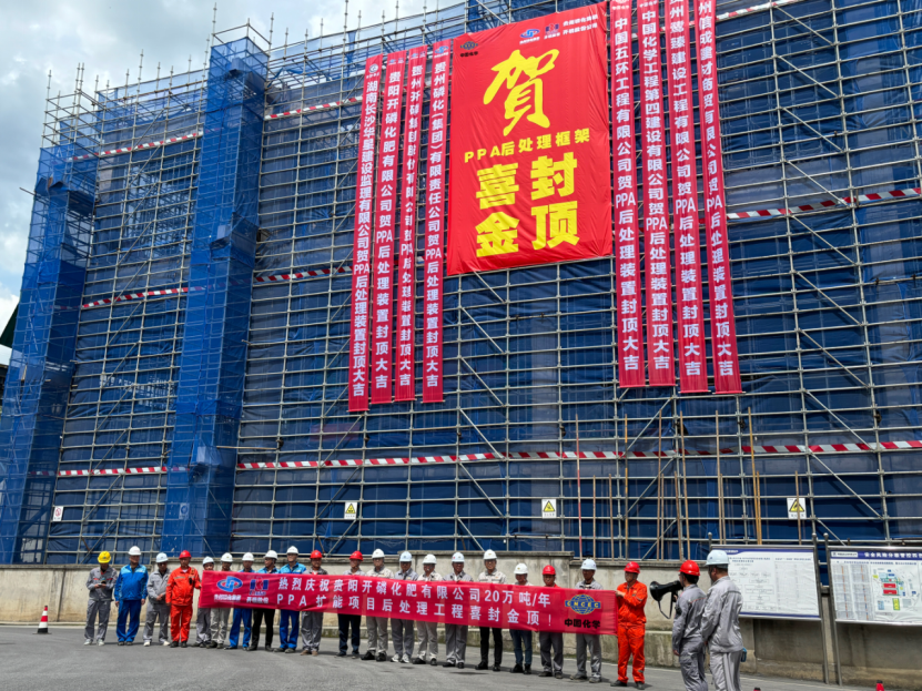 近日,由中國化學(xué)四化建華南公司承建的貴陽開磷化肥有限公司20萬噸/年P(guān)PA擴(kuò)能項(xiàng)目后處理工程主裝置順利封頂,標(biāo)志著項(xiàng)目正式進(jìn)入安裝施工階段。