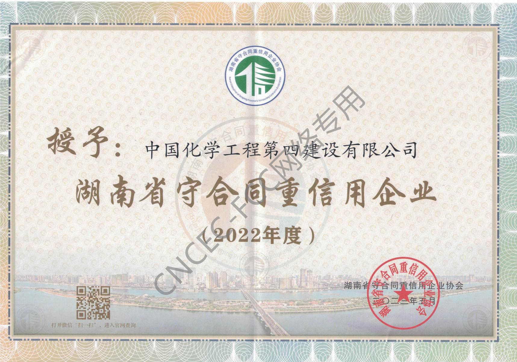 湖南省2022年度守合同重信用企業證書